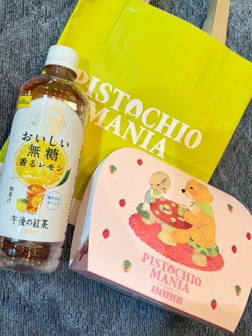 ドリンクとピスタチオチョコといちごのお菓子頂いたよimg