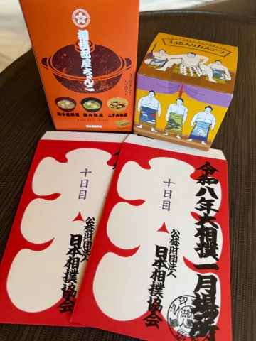 遊びに来てくれて相撲の大入り袋をその日1番目にゲットしたみたいでくれたの
